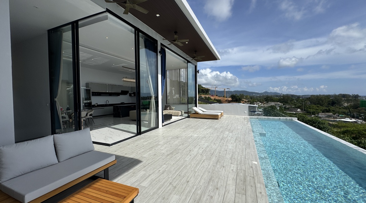 This completed Ocean Hills Villa is situated on a gentle and green hillside close to Layan Beach, offering scenic views from its upper level. On clear days, one can appreciate a blend of green landscape vistas, sunsets and glimpses of the distant ocean.