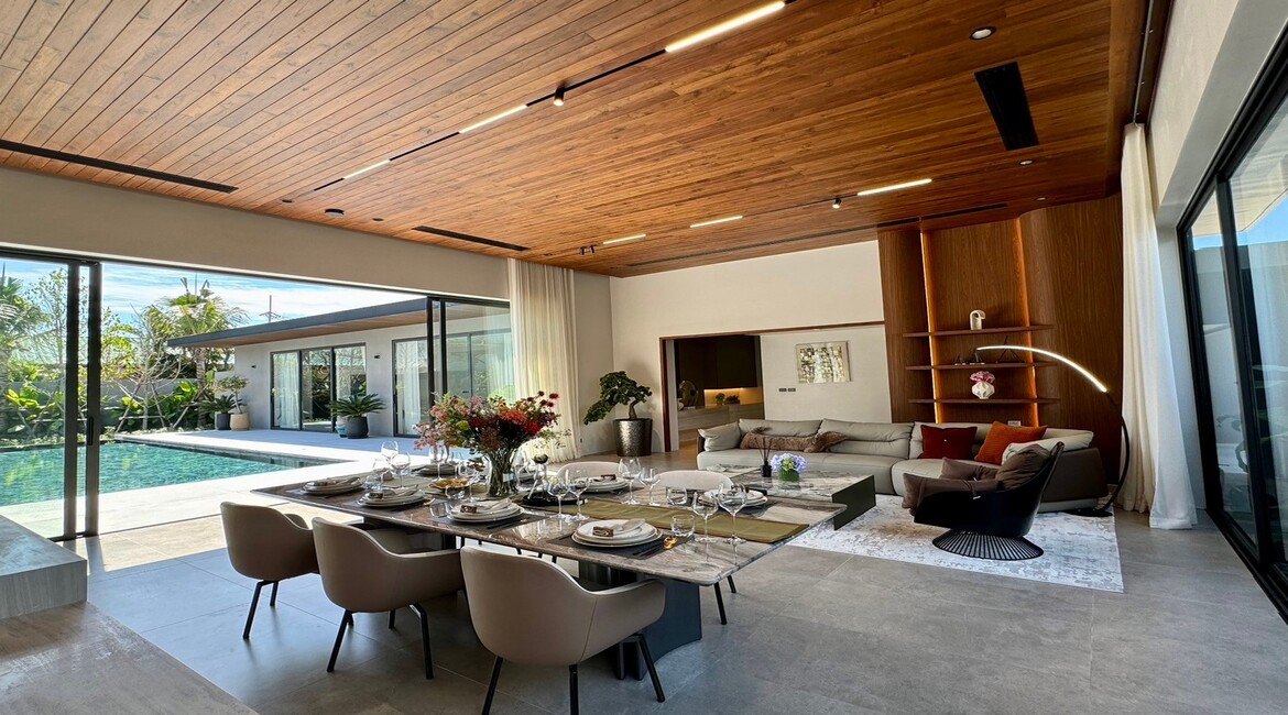 This boutique project features six spacious pool villas set on generous land plots ranging from 612 to 762 sqm. Each villa is thoughtfully designed in a smart U-shaped layout, centered around a 12-meter private swimming pool with expansive decking – perfect for relaxing or entertaining. Inside, the villas offer four stylish bedrooms, all with ensuite bathrooms, including two master suites with bathtubs. A chic open-plan living and dining area seamlessly connects to a modern western kitchen, complete with an island and breakfast bar.