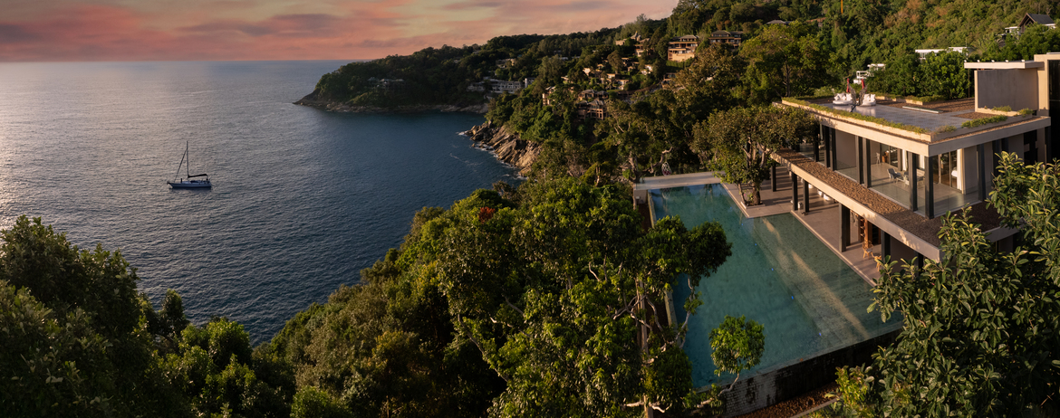 An ultra premium property set within the exclusive Cape Amarin Estate on the fashionable Millionaires Mile headland. Villa Amarisa occupies an enviable oceanfront, clifftop setting, with fabulous Westerly views across the Andaman Sea. Here, the sunsets are sublime.
